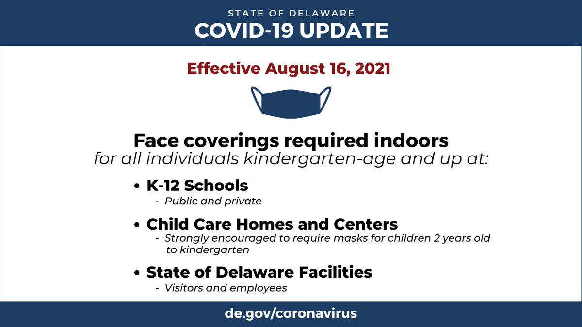 302 736-7910 or 739-5280. Starting on September 30 staff in long-term care other health care facilities and State of Delaware employees will be required to provide proof of vaccination or to undergo regular testing to prevent the transmission of COVID-19. To 430 pm Monday through Friday and from 1000 am.