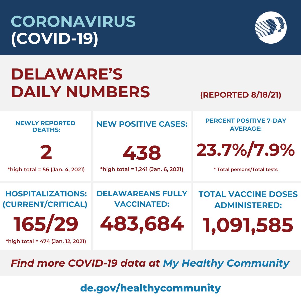 Thursday July 29 2021. July 30 2021 Positive Case Numbers Continue to Rise and Delta Variant Continues to Dominate DOVER July 30 2021 - The Delaware Division of Public Health DPH is providing an update on the most recent statistics related to coronavirus disease 2019 COVID-19 in Delaware as of 6 pm. Louisiana Department of Health P.